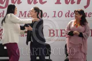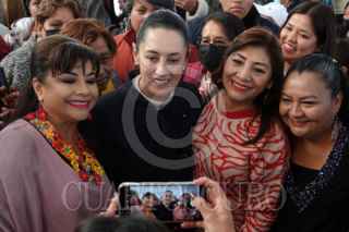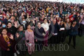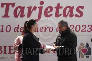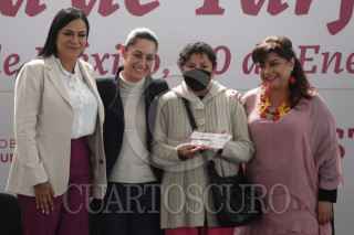 CIUDAD DE MÉXICO, 10ENERO2023.- Claudia Sheinbaum, jefa de Gobierno; Ariadna Montiel Reyes, secretaria de Bienestar, y Clara Brugada, alcaldesa de Iztapalapa, encabezaron la entrega de Tarjetas Bienestar a adultos mayores en la Utopía Santa Cruz Meyehualco. FOTO: GRACIELA LÓPEZ /CUARTOSCURO.COM