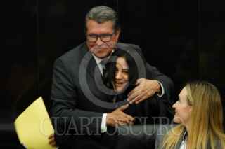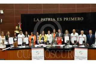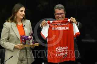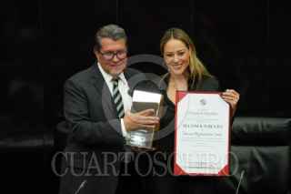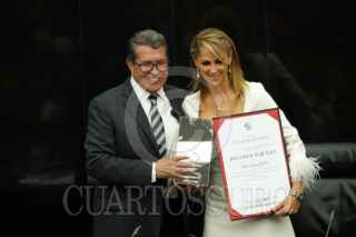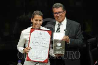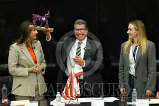 CIUDAD DE MÉXICO, 11ENERO2023.- Ricardo Monreal, coordinador de la JUCOPO, encabezó la entrega de reconocimientos a Carolina Jaramillo, Alicia Cervantes, Casandra Montero y Blanca Félix, jugadoras de las Chivas; Kenya Vergara, grupo Omnilife Chivas; Nelly Simón, directora Deportiva Chivas Femenil; a las periodistas y presentadoras Inés Sainz Gallo, Veronica Huppenkothen, Georgina González Toussaint, Gabriela Fernández de Lara, Mariazel Ollé Casals y Natalia León Torres en el Salón de la Comisión Permanente en el Senado de la República. FOTO: GRACIELA LÓPEZ /CUARTOSCURO.COM