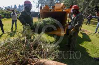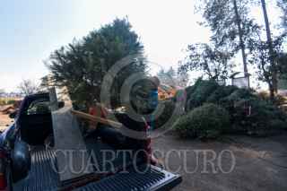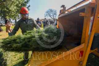 METEPEC, ESTADO DE MÉXICO, 11ENERO2023.- Inicia campaña de reciclaje de árboles de Navidad 2023 por parte de PROBOSQUE los cuales serán convertidos en composta o serán donados a artesanos mexiquenses que ocupan la madera como materia prima para elaborar diversas artesanías, juguetes u otros utensilios, serán habilitados 16 centros de acopio en los viveros forestales, de esta forma se evita que los árboles terminen en la basura o abandonados en la calle y se concluye su ciclo de vida sustentable. FOTO: CRISANTA ESPINOSA AGUILAR /CUARTOSCURO.COM