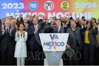 CIUDAD DE MÉXICO, 12ENERO2023.- Este mañana se anunció mediante una conferencia de prensa el regreso de la alianza Va Por México, integrada por el PRI, PAN y PRD, los líderes de estos partidos, Alejandro Moreno, Marko Cortés y Jesús Zambrano anunciaron que tras el regreso de la coalición se acordó que las candidaturas para las elecciones del 2023 en Coahuila y Estado de México, correrán a cargo del PRI, mientras que para la elección presidencial, el candidato será elegido por el PAN, para la candidatura en la CDMX, PAN y PRD se aliaran para elegir a la persona que compita por dicho cargo. FOTO: DANIEL AUGUSTO /CUARTOSCURO.COM