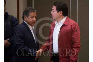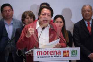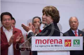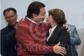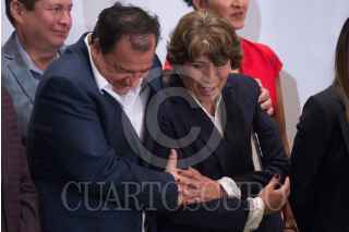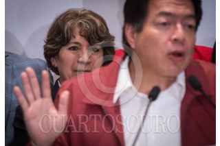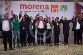 CIUDAD DE MÉICO, 13ENERO2023.- Los dirigentes nacionales: Mario Delgado (Morena); Karen Castrejón (PVEM), y Alberto Anaya (PT), confirmaron alianza para las elecciones para la gubernatura del Estado de México con la candidata Delfina Gómez, y de las elecciones presidenciales de 2024. En el evento estuvieron presentes los ex aspirantes a la gubernatura del Estado de México: Óscar González Yáñez; Horacio Duarte e Higinio Martínez, y Manuel Velasco, senador del PVEM. FOTO: MARIO JASSO/CUARTOSCURO.COM