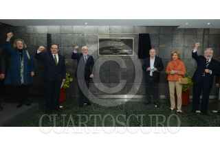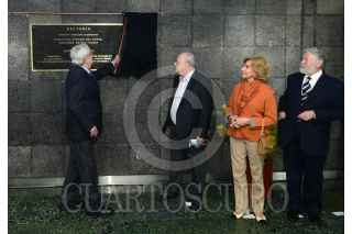 CIUDAD DE MÉXICO. 13ENERO2023.- El rector de la UNAM, Enrique Graue Wiechers, develó una placa con los nombres de los arquitectos, consultores y muralista de la Torre de Rectoría, como parte de las celebraciones por los 70 años del Día de la Dedicación de la Ciudad Universitaria (CU) y los 15 años del ingreso del Campus Central a la Lista de Patrimonio Mundial de la UNESCO. El proyecto y dirección de este edificio emblemático estuvo a cargo de los arquitectos Mario Pani, Enrique del Moral y Salvador Ortega Flores; los murales, por David Alfaro Siqueiros; los consultores fueron los doctores Luis Garrido, Alfonso Pruneda, así como Alfonso Ramos Bilderbeck, Juan José González Bustamante y Juan González A. Alpuche, se lee en la placa ubicada en el vestíbulo de la Planta Baja de la Torre de Rectoría. FOTO: UNAM /CUARTOSCURO.COM