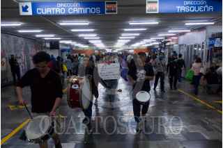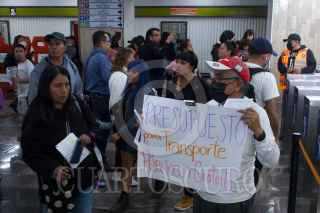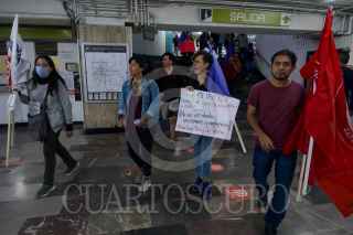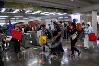 CIUDAD DE MÉXICO, 14DICIEMBRE2023.- Integrantes de diversos colectivos realizaron una asamblea frente al Hemiciclo a Juárez para tratar temas relacionados al Metro capitalino. Posteriormente se trasladaron a la estación Hidalgo de la Líneas 3 y 2 para dar el acceso libre a los ciudadanos. FOTO: ROGELIO MORALES /CUARTOSCURO.COM