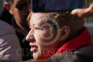 MORELIA, MICHOACÁ, 16ENERO2023. La señora Verónica Villaseñor, denuncia que tiene cuatro meses solicitando audiencia con el gobernador de Michoacán, Alfredo Ramírez Bedolla y a la fecha no ha podido concretar. La mamá de la maestra Jessica González, víctima de feminicidio, está plantada afuera de Casa de Gobierno, solicitando audiencia con el mandatario estatal. Lleva más de dos horas en el sol y no le permiten el acceso a casa de gobierno, a lo que dijo si es necesario estar día y noche, lo hará, con tal de que el gobernador escuche las irregularidades que se deben cabían en el sistema para garantizar la justicia en caso de los feminicidios. FOTO: JUAN JOSÉ ESTRADA SERAFÍN/CUARTOSCURO.COM