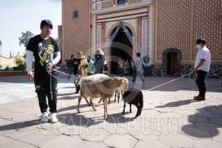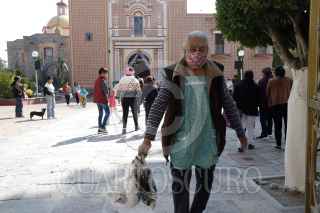 SAN ANDRÉS CHOLULA, PUEBLA, 17ENERO2023.- Vecinos de la comunidad de San Antonio Cacalotepec en el municipio de San Andrés Cholula llevaron a bendecir a sus animales en el día de su santo patrono San Antonio de Abad. FOTO: MIREYA NOVO/ CUARTOSCURO.COM
