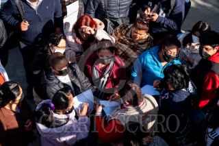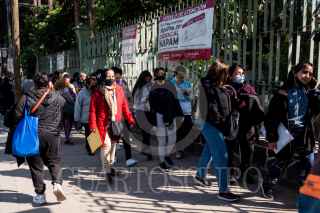 CIUDAD DE MÉXICO, 17ENERO2023.- Desde las primeras horas del día, cientos de alumnos de vocacional acudieron a las inmediaciones del hospital militar “Chivatito” para realizar sus trámites y recibir la beca Benito Juárez. Fue el día de ayer, que la desorganización causó la larga espera de las madres, padres de familia y estudiantes quienes se mantuvieron en la fila para no perder su lugar. FOTO: GALO CAÑAS/CUARTOSCURO.COM