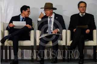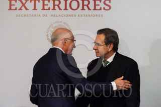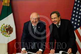 CIUDAD DE MÉXICO, 17ENERO2023.- Roberto Velasco, jefe de Unidad para América del Norte de la Secretaría de Relaciones Exteriores (SRE); Ken Salazar, embajador de Estados Unidos en México, y Esteban Moctezuma, embajador de México en Estados Unidos, encabezaron la firma de Memorandos de Entendimiento sobre Movilidad Laboral y Protección a Menores en Situación de Movilidad entre México y Estados Unidos. FOTO: GALO CAÑAS/CUARTOSCURO.COM