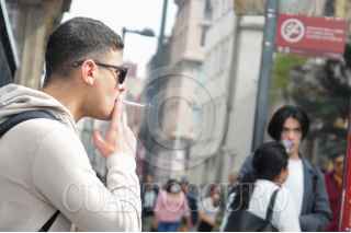 CIUDAD DE MÉXICO, 18ENERO2023.- Con la entrada en vigor de la Ley Antitabaco el pasado domingo algunas personas que caminan por las calles de la capital ignoran que ya no se está permitido fumar en ninguna plaza pública a excepción de terrazas y patios. FOTO: DANIEL AUGUSTO /CUARTOSCURO.COM