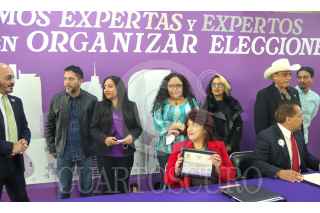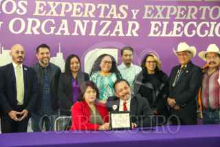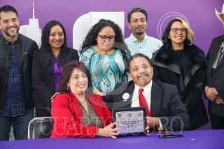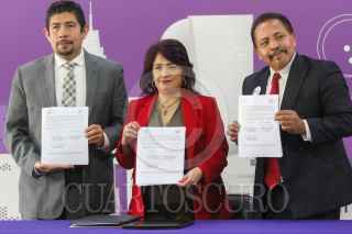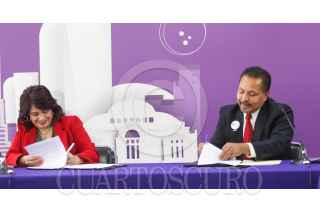 CIUDAD DE MÉXICO. 18ENERO2023.- Patricia Avendaño, consejera presidente del Instituto Electoral de la Capital firmo convenio con organizaciones por el bienestar de los paisanos en California, que dirige Juan C. Guerrero, el evento tuvo lugar en el IECM en la alcaldía de Tlalpan. FOTO : VICTORIA VALTIERRA/CUARTOSCURO.COM