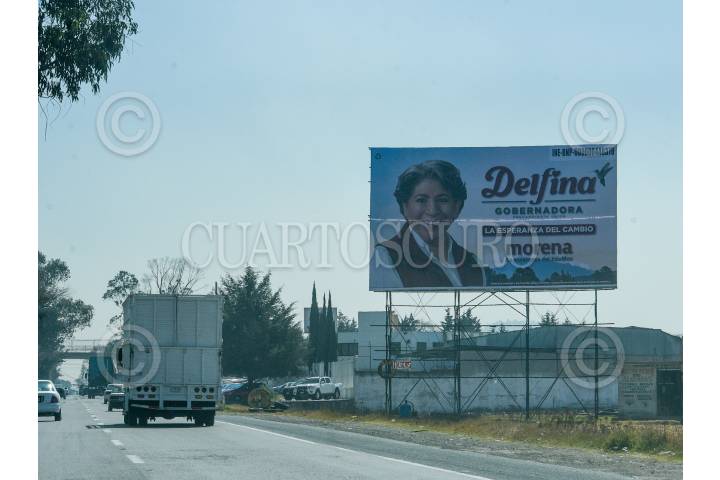 TOLUCA, ESTADO DE MÉXICO, 19ENERO2023.- En diversos puntos del Valle de Toluca se pueden observar espectaculares de Delfina Gómez precandidata única a la gubernatura del Estado de México por MORENA. FOTO: CRISANTA ESPINOSA AGUILAR /CUARTOSCURO. COM