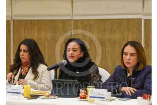 TOLUCA, ESTADO DE MÉXICO, 18ENERO2023.- Laura González Hernández presidenta del Consejo Coordinador Empresarial del Estado de México (CCEM) durante la reunión de consejo acompañada por Leticia Victoria Tavira, Magistrada presidenta del TEEM y Amalia Pulido Gómez Consejera presidenta del IEEM, consejeros y empresarios, informó que el sector empresarial serán observadores y vigilantes durante el proceso electoral en la entidad mexiquense, para garantizar que sea transparente, pacifico, democrático y limpio. FOTO: CRISANTA ESPINOSA AGUILAR /CUARTOSCURO.COM