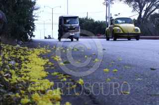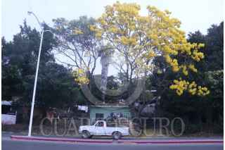 TLALTIZAPÁN, MORELOS, 18ENERO2023.- Las flores amarillas de un árbol de guayacán forman un camino a lado de la carretera Zacatepec-Cuernavaca. FOTO: MARGARITO PÉREZ RETANA / CUARTOSCURO.COM