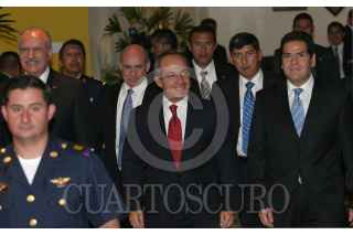 MÉXICO, D.F., 15MARZO2007.- José Luis Barraza, Presidente saliente de la CCE, Eduardo Sojo, Secretario de Economía, Felipe Calderón Hinojosa, Presidente de la República y Armando Paredes Arroyo, Presidente entrante del Consejo Coordinador Empresarial, llegan a un hotel de polanco en donde se realizó la ceremonia de clausura de la XXVI Asamblea Ordinaria del CCE. FOTO: MOISÉS PABLO/CUARTOSCURO.COM