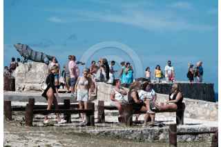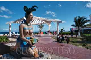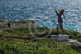 ISLAS MUJERES, QUINTANA ROO, 19ENERO2023.- Turistas disfrutan del parque escultórico ubicado en la punta sur de Isla Mujeres. FOTO: ELIZABETH RUIZ/CUARTOSCURO.COM