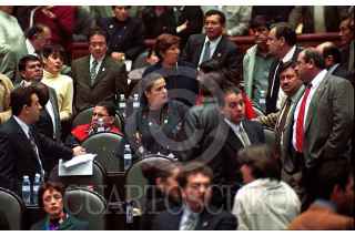 Dipuados del PRI, comandadpos por Beatriz Paredes, abandonaron el salon de plenos de San Lázaro luego de que se les notificó de la decición del TRIFE de anular las elecciones en el Estado de Tabasco. FOTO: Pedro Mera/CUARTOSCURO.COM