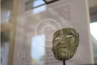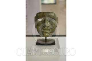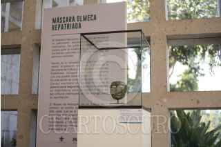 XALAPA, VERACRUZ, 19ENERO2023.- Una máscara olmeca que data entre el año 1200 y 900 a.C. es exhibida en el Museo de Antropología de Xalapa luego de haber sido recuperada de un coleccionista en Nueva York y repatriada a México. FOTO: YERANIA ROLÓN/CUARTOSCURO.COM