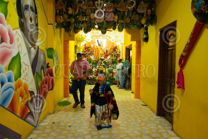 CHIAPA DE CORZO, CHIAPAS, 19ENERO2023.- Pobladores chiapacorceños realizan las tradicionales "enramas" en el marco de la Fiesta Grande de Enero de la región. Las "enramas" consisten en colocar frutas de la región y panes tradicionales en las ermitas que albergan a sus santos. FOTO: ISABEL MATEOS /CUARTOSCURO.COM