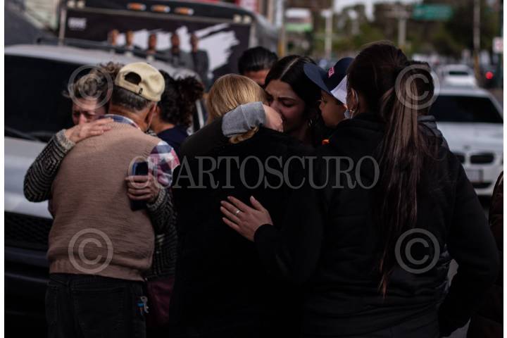 GUADALUPE, ZACATECAS, 20ENERO2023.- Velan por un par de horas a Viviana, Daniela y Paola en la ciudad de Zacatecas, antes de partir a Colotlán con sus padres y familiares. Amigas de Viviana y Daniela Márquez Pichardo, en la ciudad de Zacatecas, solicitaron a la familia de las jóvenes desaparecidas en Tepetongo, Zacatecas; pudieran velar a las tres jovenes por algunos momentos, para despedirse de ellas después de haber sido identificadas por la Fiscalía y entregadas a sus familiares. Alrededor de las 16:30 llegaron dos carrozas con tres féretros, además de las hermanas Márquez, Paola Vargas Montoya, para ser despedidas en las funerarias Protectodeco, ubicadas sobre la avenida García Salinas. Amigas, amigos y compañeros de trabajo de las jóvenes dieron el pésame a sus padres, además de traerles la música que más les gustaba para despedirles. Las tres jovenes en compañía de José Melesio Gutiérrez Padilla, quien era prometido de Daniela; fueron desaparecidos sobre la carretera Jerez-Colotlán el pasado 25 de diciembre de 2022. Después de la presión social de familiares y amigos, las autoridades del Estado realizaron diversos operativos de búsqueda en la zona y el pasado 17 de enero fue localizado el vehículo en el que viajaban y al día siguiente fueron localizados restos humanos de por lo menos cuatro personas; el día de ayer 18 de enero, fueron identificados por Fiscalía y corroborado por familiares. FOTO: ADOLFO VLADIMIR /CUARTOSCURO.COM