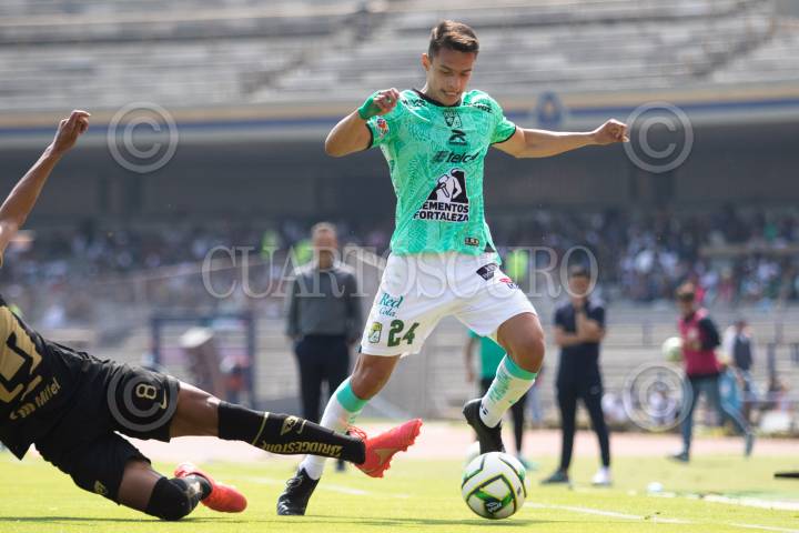 CIUDAD DE MÉXICO, 22ENERO2023.- Los Pumas vencieron 4-1 al León en partido correspondiente a la jornada 3 del Torneo de Clausura 2023, en el Estadio Olímpico Universitario. Los goles de los universitarios fueron de Gustavo del Prete; Diogo de Oliveira y doblete de Juan Ignacio Dinenno, mientras que por los escarlatas se hizo presente Lucas di Yorio. FOTO: MOISÉS PABLO/CUARTOSCURO.COM