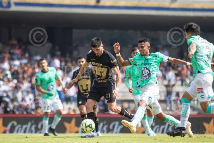 CIUDAD DE MÉXICO, 22ENERO2023.- Los Pumas vencieron 4-1 al León en partido correspondiente a la jornada 3 del Torneo de Clausura 2023, en el Estadio Olímpico Universitario. Los goles de los universitarios fueron de Gustavo del Prete; Diogo de Oliveira y doblete de Juan Ignacio Dinenno, mientras que por los escarlatas se hizo presente Lucas di Yorio. FOTO: MOISÉS PABLO/CUARTOSCURO.COM