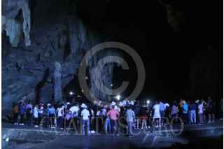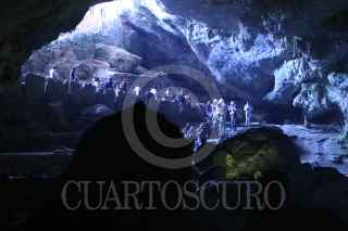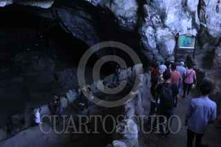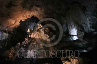 PILCAYA,GUERRERO, 22ENERO2023.- El Parque Nacional Grutas de Cacahuamilpa alberga el sistema de cavernas con formaciones calcáreas más espectacular del país, por lo tanto, es el más visitado durante todo el año. La gruta tiene una edad aproximada de 85 millones de años y se ubica al norte del estado de Guerrero, dentro de la Sierra Madre del Sur. El sitio tiene un alto valor geológico por los enormes salones cavados por el agua en la roca caliza durante miles de años; fue descubierta y usada desde el siglo IX por indígenas de la zona. En 1834, por un azar del destino, el hacendado Manuel Sainz de la Peña y Miranda, quien huía después de herir a otro hombre en un duelo en Tetecala, la descubrió, ya que los nativos de la zona lo ayudaron a esconderse en ella, y para el año siguiente se organizó la primera expedición. La enorme gruta ha llamado la atención de grandes personalidades como la Marquesa Calderón de la Barca en 1841, la Emperatriz Carlota, el polímata Alexander Von Humboldt entre muchos. La gruta también ha sido escenario de películas, siendo la más representativa Macario protagonizada por el actor Ignacio López Tarso. En 1936, el presidente Lázaro Cárdenas, decretó el área como Parque Nacional Grutas de Cacahuamilpa. FOTO: MARGARITO PÉREZ RETANA / CUARTOSCURO.COM