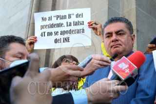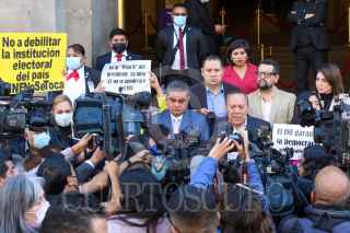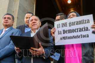 CIUDAD DE MÉXICO, 23ENERO2023.- Luis Cházaro, coordinador de la bancada del PRD en la Cámara de Diputados, y Jesús Zambrano, dirigente nacional del PRD, presentaron una acción de constitucionalidad en contra de la Reforma Electoral promovida por el Ejecutivo. FOTO: MOISÉS PABLO/CUARTOSCURO.COM