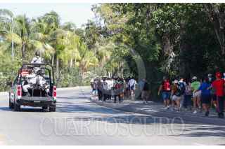 CANCÚN, QUINTANA ROO, 23ENERO2023.- Decenas de unidades de servicio de taxi bloquearon el bulevar Kukulcán, a la altura del kilómetro cero, y al mismo tiempo, otro numeroso grupo de unidades bloquea la misma vía a la altura del kilómetro 28, ambas vialidades dan acceso al Aeropuerto Internacional de Cancún, esto por la puesta en marcha del servicio de Uber en la terminal aérea. FOTO: CUARTOSCURO.COM