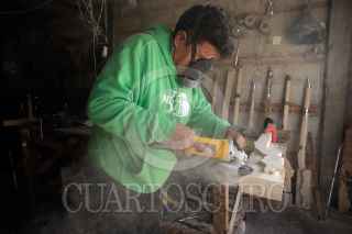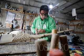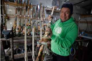 HUEJOTZINGO, PUEBLA, 24ENERO2023.- La familia Montes lleva tres generaciones elaborando mosquetones para el Carnaval de Huejotzingo. El proceso que lleva un mosquetón es de aproximadamente medio año, pues tiene que prepararse la madera y oscila entre los 1000 y 5000 pesos. FOTO: MIREYA NOVO/CUARTOSCURO.COM