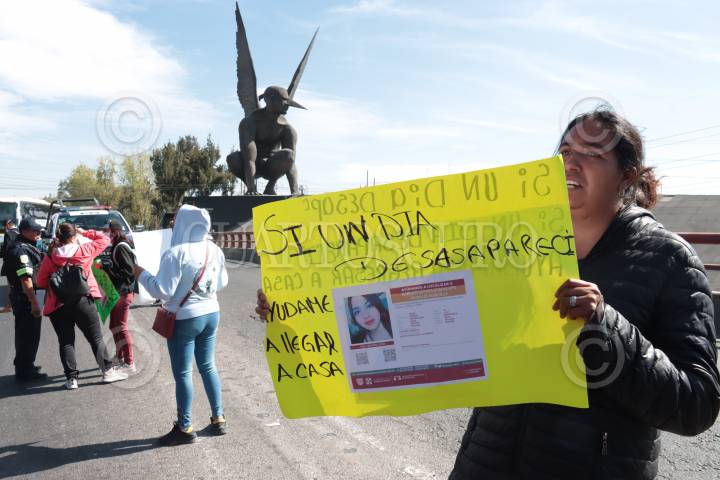 ECATEPEC, ESTADO DE MÉXICO, 24ENERO2023.- Familiares y amigos de Karla Itzayana Guadalupe Morales bloquearon la autopista México-Pachuca, a la altura de San Juan Ixhuatepec, para exigir a las autoridades su localización, ella se encuentra desaparecida desde el 5 enero, sus familiares informaron que la chica señaló que iba a Pachuca y ya nada se supo de ellas. La manifestación provocó intenso tráfico vehicular. FOTO: ROGELIO MORALES/CUARTOSCURO.COM