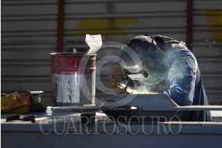 CIUDAD DE MÉXICO, 26ENERO2023.- Trabajadores de obra continúan soldando y reforzando la nueva trabe de la estación del metro Olivos de la Línea 12, la cual sufrió un choque de trenes el pasado 3 de mayo del 2021. FOTO: GRACIELA LÓPEZ /CUARTOSCURO.COM