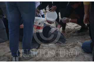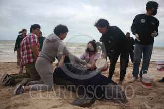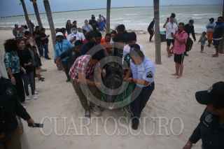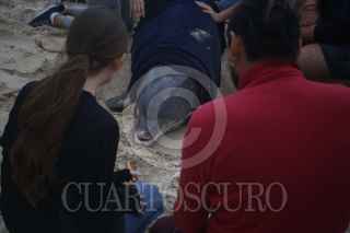 PROGRESO, YUCATÁN, 26ENERO2023.- Hoy por la tarde recaló a las playas del puerto de Progreso un delfín de la especie denominada bufeo o delfín tonina (Tursiops truncatus) de edad avanzada, es el tercero en lo que va del año. De acuerdo al biólogo Raúl Diaz Gamboa, Jefe del Departamento de Biología Marina de la UADY , el delfín tenía una gran mordida a la altura de pedúnculo caudal. Personal de la Marina lo traslado a sus instalaciones bajo condiciones controladas para tenerlo bajo observación durante las próximas horas y valorar si será liberado en próximos días. FOTO: MARTÍN ZETINA/CUARTOSCURO.COM