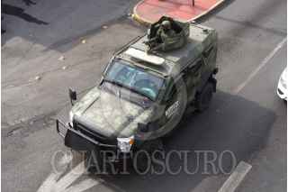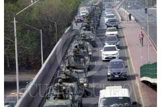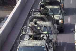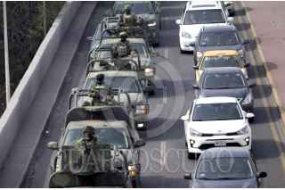 MONTERRREY, NUEVO LEÓN, 28ENERO2023.- Un contingente de 300 elementos de la Secretaría de la Defensa Nacional arribaron a Monterrey para reforzar la seguridad, después de su llegada al campo de la Séptima Zona Militar en Apodaca, los militares salieron en convoy por la ciudad. La inseguridad en diversos municipios de Nuevo León se ha incrementado siendo Santa Catarina, Monterrey, Guadalupe, Cadereyta y Juárez las más afectadas. FOTO: GABRIELA PÉREZ MONTIEL / CUARTOSCURO.COM