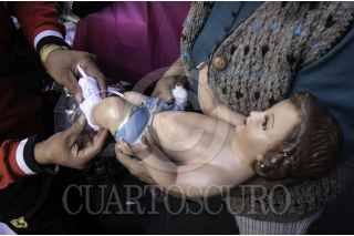 CIUDAD DE MÉXICO, 29ENERO2023.- Continúa hasta el 2 de febrero el Tianguis del niño dios que recorre la Calle Roldan en el Centro Histórico y cientos de familias creyentes acuden para comprar artículos de vestimenta para su figurilla de niño dios así como para resanar y adquirir piezas. FOTO: ANDREA MURCIA /CUARTOSCURO.COM