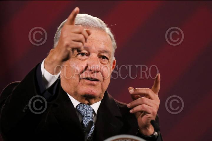 CIUDAD DE MÉXICO, 30ENERO2023.- Andrés Manuel López Obrador, Presidente de México; Mauricio Vila, gobernador de Yucatán; Manuel Bartlett, director de la CFE; Luis Cresencio Sandoval, secretario de la Defensa Nacional; Javier May, director de Fonatur; Manuel Muñozcano Castro, director general de Azvindi Ferroviario; Maite Ramos Gómez, directora de Alstom México; Ricardo Sheffield Padilla, titular de la Procuraduría Federal del Consumidor (Profeco); Blas Andrés Núñez Jordán, jefe del Centro Coordinador de Operaciones (CCO) del Tren Maya, adscrito a la Dirección General de Ingenieros de la Secretaría de la Defensa Nacional (Sedena), durante la mañanera en la que se dieron detalles del Tramo 3 del Tren Maya. FOTO: MOISÉS PABLO/CUARTOSCURO.COM