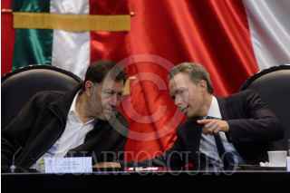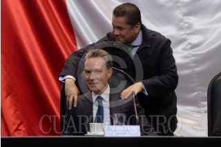 CIUDAD DE MÉXICO, 31ENERO2023.-Gerardo Fernández Noroña, diputado del PT, participó en la Cuarta Reunión Plenaria del Grupo Parlamentario del PVEM realizada en el salón Legisladores de la República de la Cámara de Diputados. Estuvieron presentes: Karen Castrejón, dirigente nacional del Partido Verde Ecologista de México (PVEM); Carlos Puente, diputado y coordinador del PVEM y Manuel Velasco, senador y coordinador del PVEM. FOTO: MARIO JASSO/CUARTOSCURO.COM