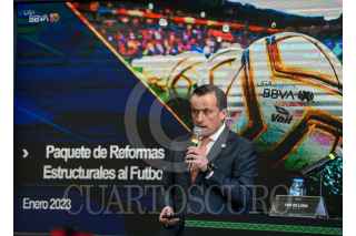 TOLUCA, ESTADO DE MÉXICO, 31ENERO2023.- Yon de Luisa Presidente de la FemexFut y Mikel Arriola Presidente Ejecutivo de la Liga MX en conferencia de prensa anunciaron un Paquete de Reformas Estructúrales al Fútbol Mexicano. Se anunció a Rodrigo Ares de Parga como Director Ejecutivo de Selecciones Nacionales. En la Liga MX se elimina repechaje, se reduce el número de extranjeros cada año, volverá el ascenso-descenso, fin de la multipropiedad. FOTO: CRISANTA ESPINOSA AGUILAR /CUARTOSCURO.COM