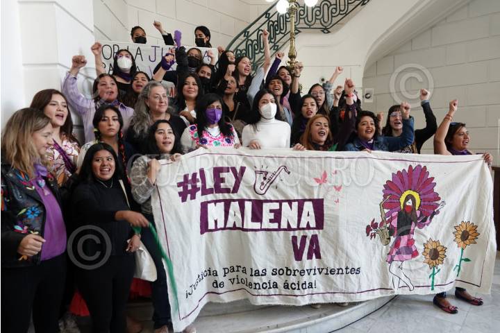 CIUDAD DE MÉXICO, 31ENERO2023.- La saxofonista María Elena Ríos y Elisa Xolalpa, víctimas de ataque de ácido, acompañadas de colectivas feministas y de Marce Fuentes, diputada local del Distrito 15 en la capital, ofrecieron una conferencia de prensa para anunciar la iniciativa de la Ley Malena en el Congreso de la Ciudad de México. FOTO: GRACIELA LÓPEZ /CUARTOSCURO.COM