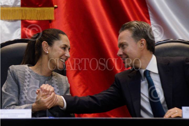 CIUDAD DE MÉXICO, 31ENERO2023.- Claudia Sheinbaum, jefa de Gobierno, participó en la Cuarta Reunión Plenaria del Grupo Parlamentario del PVEM realizada en el salón Legisladores de la República de la Cámara de Diputados. Estuvieron presentes: Karen Castrejón, dirigente nacional del Partido Verde Ecologista de México (PVEM); Carlos Puente, diputado y coordinador del PVEM; Manuel Velasco, senador y coordinador del PVEM y Rogelio Ismael Zamora, senador del PVEM. FOTO: MARIO JASSO/CUARTOSCURO.COM