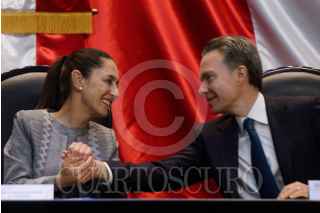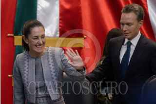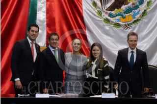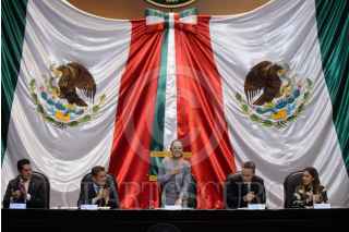 CIUDAD DE MÉXICO, 31ENERO2023.- Claudia Sheinbaum, jefa de Gobierno, participó en la Cuarta Reunión Plenaria del Grupo Parlamentario del PVEM realizada en el salón Legisladores de la República de la Cámara de Diputados. Estuvieron presentes: Karen Castrejón, dirigente nacional del Partido Verde Ecologista de México (PVEM); Carlos Puente, diputado y coordinador del PVEM; Manuel Velasco, senador y coordinador del PVEM y Rogelio Ismael Zamora, senador del PVEM. FOTO: MARIO JASSO/CUARTOSCURO.COM