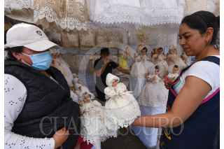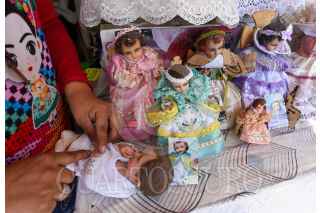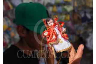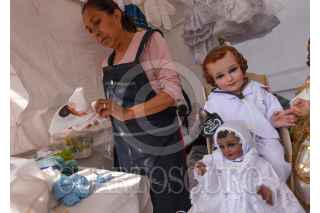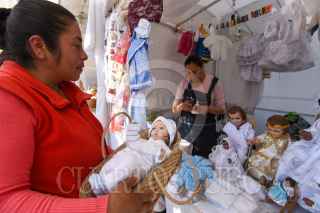 TOLUCA, ESTADO DE MÉXICO, 31ENERO2023.- Previo al festejo del Día de la Candelaria este 2 de febrero familias acuden al Mercado Juárez con los comerciantes de temporada que se instalaron a un costado del estacionamiento de este Mercado en Toluca para poder vestir sus imágenes del Niño Dios, diversos modelos son ofrecidos al igual que los precios son accesibles para todos los bolsillos. FOTO: CRISANTA ESPINOSA AGUILAR /CUARTOSCURO.COM