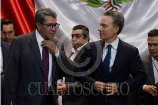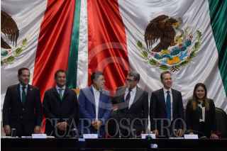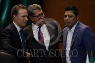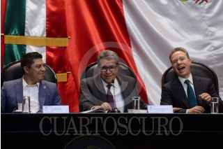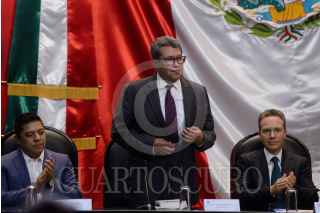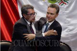 CIUDAD DE MÉXICO, 31ENERO2023.- Ricardo Monreal, senador y coordinador de Morena, participó en la Cuarta Reunión Plenaria del Grupo Parlamentario del PVEM realizada en el salón Legisladores de la República de la Cámara de Diputados. Estuvieron presentes: Karen Castrejón, dirigente nacional del Partido Verde Ecologista de México (PVEM); Carlos Puente, diputado y coordinador del PVEM; Manuel Velasco, senador y coordinador del PVEM; Ricardo Gallardo, gobernador de San Luis Potosí, y Raúl Bolaños-Cacho, senador del PVEM. FOTO: MARIO JASSO/CUARTOSCURO.COM