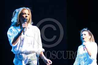 MÉXICO D.F. 17MARZO2007.- Dos de las integrantes del grupo "Flans", Mimi e Ilse, acudieron a la obra musical "Hoy no me puedo levantar". FOTO: JEFTÉ ARGUELLO/CUARTOSCURO.COM
