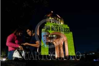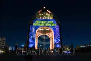 CIUDAD DE MÉXICO, 01FEBRERO2023.- La organización ambientalista Greenpeace realizó una protesta en que proyecto las leyendas: “Protejamos la vida. Protejamos los Océanos”, “Secretario Ebrard No nos Falles” y “Necesitamos un tratado global de los océanos, Ya” sobre el Monumento a la Revolución. FOTO: GALO CAÑAS/CUARTOSCURO.COM