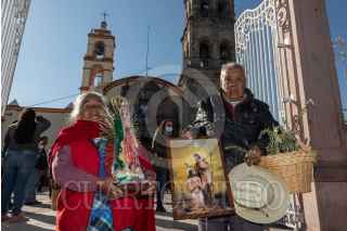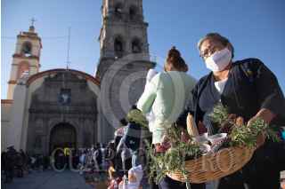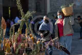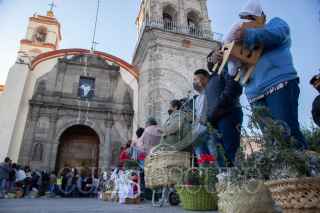 SAN JUAN IXTENCO, TLAXCALA, 02FEBRERO2023.- Integrantes de esta comunidad indígena Yumuhú u Otomí, se observan porta sus canastas con semillas nativas y los tradicionales “niños dios hacer fila a la entrada del templos de San Juan bautista, en lo que es la ceremonia tradicional de bendición de semillas, mismas que habrán de utilizar en el próximo ciclo agrícola. Los habitantes de esta comunidad se han erigido ellos mismos en guardianes de las semillas nativas ya que consideran que es el patrimonio inmaterial que recibieron de antiguas generaciones. FOTO: J GUADALUPE PÉREZ/CUARTOSCURO.COM