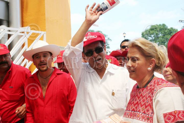 TAJIN,VERACRUZ 17MARZO2007.- Con los voladores de Papantla se llevo a cabo la inauguracion oficial del Festival de la Identidad "Cumbre Tajin 2007" inaugurado por el Gobernador del Estado Fidel Herrera Beltran FOTO:CARLOS TISCHLER/CUARTOSCURO.COM
