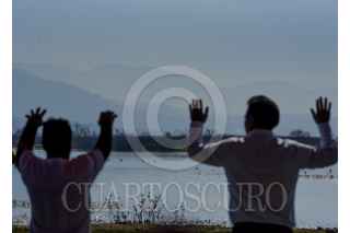 LERMA, ESTADO DE MÉXICO, 02FEBRERO2023.- Este 2 de febrero es el Día Internacional de los Humedales, ejidatarios, académicos, Organizaciones civiles, entre otros llevaron a cabo una ceremonia Otomí en la Ciénaga de Chignahuapan en el Ejido de San Nicolás, paraje Las Puentecillas en Lerma, por la restauración y conservación y conservación de Las Ciénagas del Lerma, conformadas por tres cuerpos de agua, se contaba con una superficie de 30 mil hectáreas de humedal, las cuales se han perdido llegando a 3026 hectáreas actualmente. Estas lagunas son muy importantes para las aves endémicas y aves que migran de otros países, así como otras especies que se encuentran en estos humedales como el ajolote, acociles, reptiles, mamíferos como el conejo entre otros, se tiene el registro de la llegada de 30 mil a 100 mil aves. Estos humedales son aprovechados desde la pesca, la utilización del tule para elaborar Artesanias, la recarga de mantos acuíferos fuente de agua potable para el Valle de Toluca y la CDMX. Esta área es una zona protegida de las ciénagas de Lerma la cual se encuentra en peligro por la caza de aves, contaminación con aguas residuales de zonas habitación así como de la industria y basura, aumento de la mancha urbana son algunos de los problemas que se tienen y que actualmente se busca conservar a través de diversos iniciativas por diversos colectivos. FOTO: CRISANTA ESPINOSA AGUILAR /CUARTOSCURO.COM