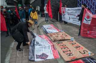 CIUDAD DE MÉXICO, 03FEBRERO2023.- Integrantes del Sindicato de la Unión de Trabajadores del Instituto de Educación Media Superior (SUTIEMS) presentaron una queja ante la Comisión de Derechos Humanos de la capital en la que exigen se investigue y sancione a los responsables de la presunta represión policiaca durante una manifestación del pasado 27 de enero. FOTO: MARIO JASSO/CUARTOSCURO.COM