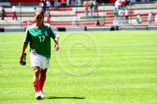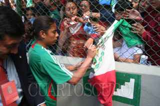 TOLUCA, ESTADO DE MÉXICO, 17MARZO2007.- La mexicana Maribel Domínguez convivió con aficionados al término del encuentro que la Selección Femenil Mexicana de Futbol ganó a su similar de Japón por marcador de 2-1, pero no consiguió su pase al Mundial de China, al terminar 3-2 el marcador global. FOTO: ISAAC ESQUIVEL/CUARTOSCURO.COM