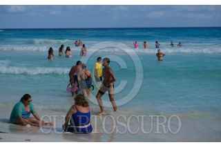 CANCÚN, QUINTANA ROO, 03FEBRERO023.- Turistas nacionales y extranjeros disfrutan de playa Forum en este destino turistico. El día de hoy, el presidente Andrés Manuel López Obrador declaró que las playas del país deberían ser declaradas áreas protegidas. FOTO: ELIZABETH RUIZ/CUARTOSCURO.COM