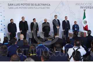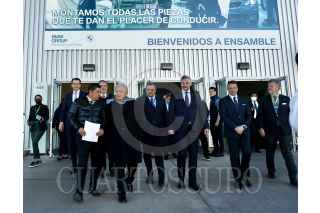 VILLA DE REYES, SAN LUIS POTOSÍ, 03FEBRERO2023.- Andrés Manuel López Obrador, presidente de México, asistió al anuncio de inversión BMW Group, planta San Luis Potosí. Lo acompañaron: Juan Pablo de Botton Falcón, subsecretario de Egresos de la Secretaría de Hacienda y Crédito Público; Marcelo Ebrard Casaubon, secretario de Relaciones Exteriores; José Ricardo Gallardo Cardona, gobernador de San Luis Potosí; Milan Nedeljkovic, miembro del Consejo de Administración para Producción de BMW AG; Harald Gottsche, presidente y CEO de BMW Group, Planta San Luis Potosí y Marisela Escalante Castillo, operadora directa de pintura. FOTO: PRESIDENCIA/CUARTOSCURO.COM